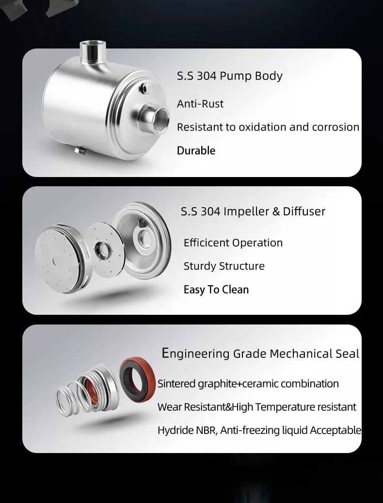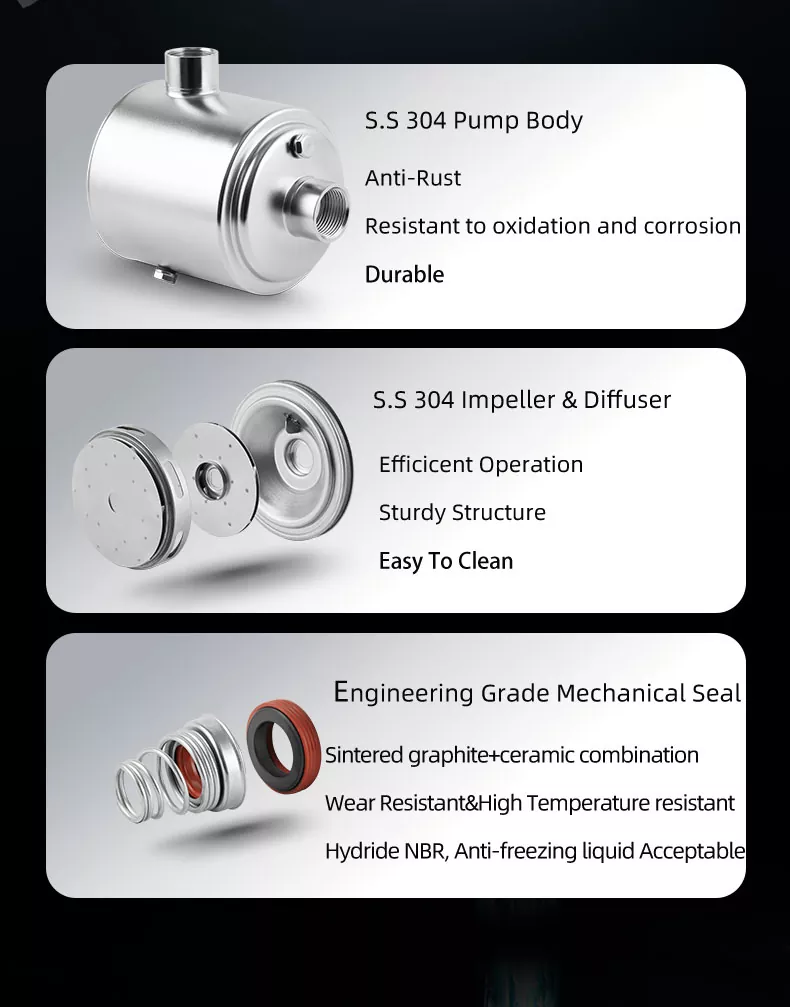 Die Haltbarkeit ist der Schlüssel, wenn es um Wasserpumpen geht, und unsere intelligente mehrstufige Druckpumpe ist für die Dauer gebaut. Diese Pumpe ist aus hochwertigen Materialien hergestellt und für langfristige Zuverlässigkeit ausgelegt. Sie ist eine Investition, die Ihnen in den kommenden Jahren gut dienen wird. Unabhängig davon, ob Sie es für Wohn- oder Geschäftsanwendungen verwenden, können Sie darauf vertrauen, dass diese Pumpe dem Test der Zeit standhält.